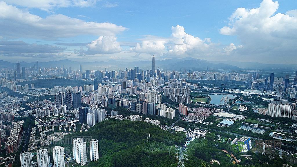 從梅林山高空可看見遠處的平安大廈。