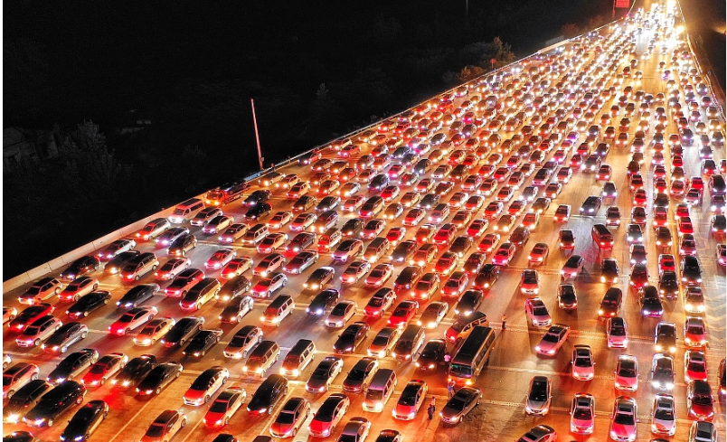 航拍鄭州中秋返程高峰 堵車數公里宛 ...