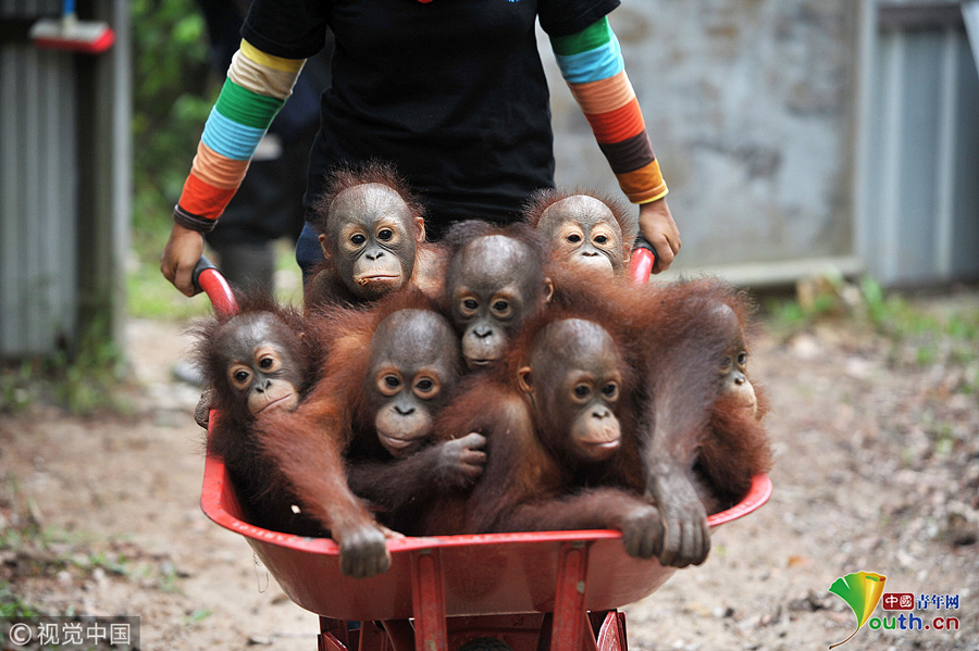 當(dāng)?shù)貢r間2018年9月18日,印尼加里曼丹克塔邦,國際動物救援(IAR)猩猩安全與保護(hù)中心里。圖片作者:Newscom