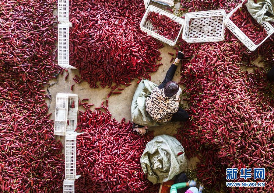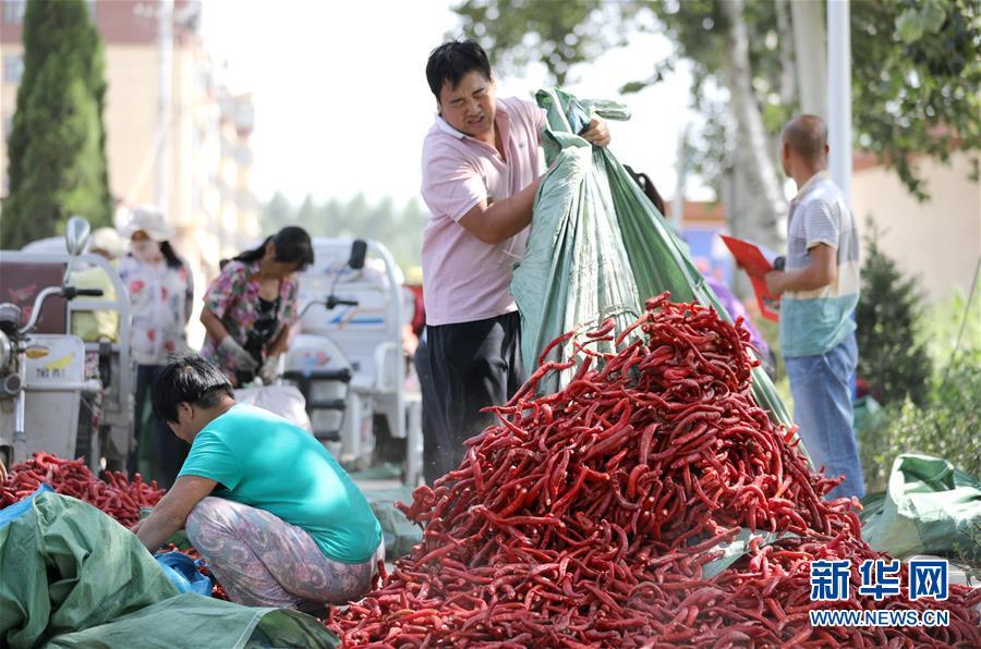 9月16日,阜城縣王集鄉(xiāng)南張莊村農(nóng)民在整理收獲的辣椒。近年來,河北省阜城縣王集鄉(xiāng)在推進(jìn)產(chǎn)業(yè)富民過程中,積極引導(dǎo)農(nóng)民調(diào)整農(nóng)業(yè)產(chǎn)業(yè)結(jié)構(gòu),按照品種特色化、種植規(guī)模化、產(chǎn)銷一體化的“公司+基地+農(nóng)戶”的經(jīng)營(yíng)模式,鼓勵(lì)農(nóng)民發(fā)展特色辣椒種植,推行“訂單種植”模式,開辟出了一條農(nóng)民創(chuàng)收新路徑。目前,阜城縣王集鄉(xiāng)辣椒種植面積3100余畝,每畝年收益2500元以上,帶動(dòng)當(dāng)?shù)剞r(nóng)民實(shí)現(xiàn)增收。新華社記者朱旭東攝