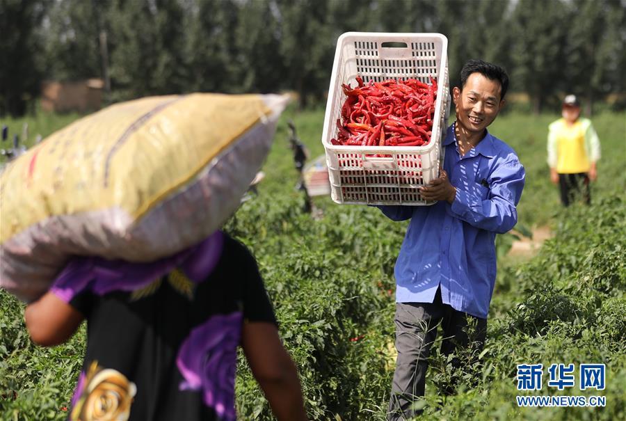 9月16日,阜城縣王集鄉(xiāng)南張莊村農(nóng)民在搬運(yùn)采摘的辣椒。近年來,河北省阜城縣王集鄉(xiāng)在推進(jìn)產(chǎn)業(yè)富民過程中,積極引導(dǎo)農(nóng)民調(diào)整農(nóng)業(yè)產(chǎn)業(yè)結(jié)構(gòu),按照品種特色化、種植規(guī)?;a(chǎn)銷一體化的“公司+基地+農(nóng)戶”的經(jīng)營(yíng)模式,鼓勵(lì)農(nóng)民發(fā)展特色辣椒種植,推行“訂單種植”模式,開辟出了一條農(nóng)民創(chuàng)收新路徑。目前,阜城縣王集鄉(xiāng)辣椒種植面積3100余畝,每畝年收益2500元以上,帶動(dòng)當(dāng)?shù)剞r(nóng)民實(shí)現(xiàn)增收。新華社記者朱旭東攝