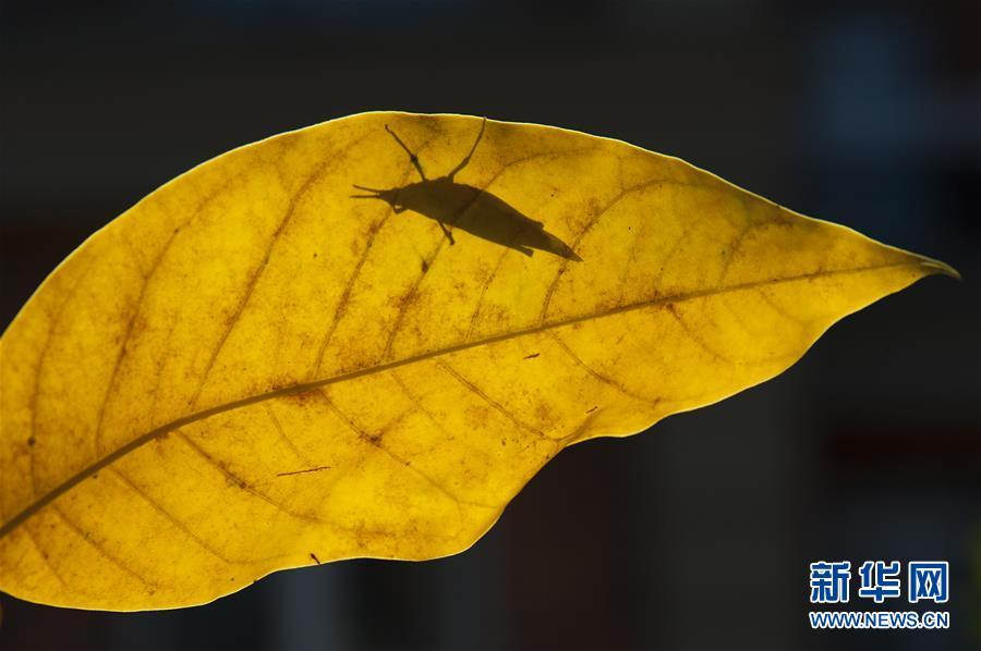 9月24日在上海市松江區(qū)農(nóng)田里拍攝的蚱蜢。 新華社記者張建松攝