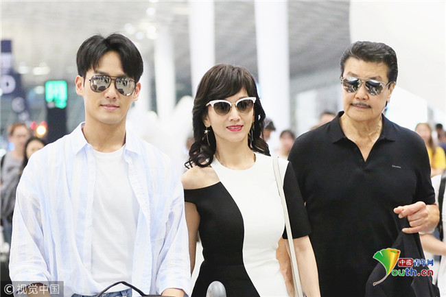 2018年9月25日晚,深圳,剛參加完央視秋晚的趙雅芝攜老公黃錦燊及兒子黃愷杰抵達深圳寶安機場,超高顏值的一家人所致之處頻頻引起側(cè)目,其子黃愷杰自推行李車,俊朗的外形引起粉絲一路跟拍,相當拉風!