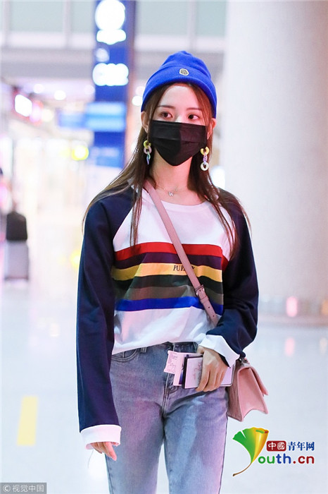 2018年9月25日,北京,“錦鯉少女”楊超越現(xiàn)身機場,她身穿“彩虹裝”青春無敵,戴著糖果色耳環(huán),細(xì)節(jié)處可愛吸睛。