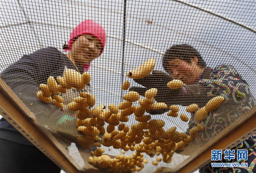 9月23日,張北縣小二臺(tái)鎮(zhèn)一家馬鈴薯育種中心的工人在大棚內(nèi)展示收獲的脫毒微型薯。 近年來(lái),地處壩上地區(qū)的河北省張北縣因地制宜,積極推進(jìn)馬鈴薯產(chǎn)業(yè)化發(fā)展,形成了馬鈴薯繁種育種、商品薯種植、倉(cāng)儲(chǔ)、加工為一體的產(chǎn)業(yè)鏈,帶動(dòng)農(nóng)民增收致富。 新華社記者楊世堯攝