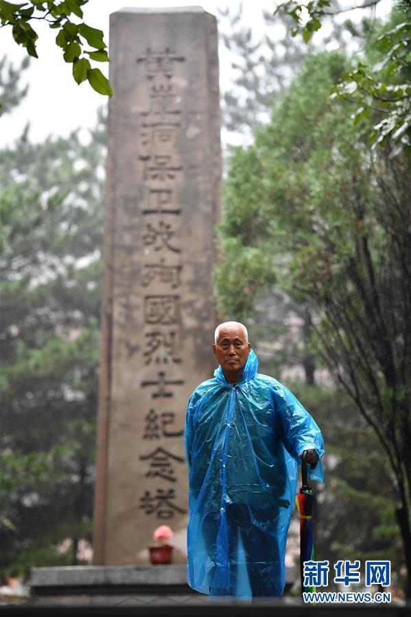 在黃崖洞烈士陵園,趙乃堂在黃崖洞保衛(wèi)戰(zhàn)殉國烈士紀(jì)念塔前(9月18日攝)。