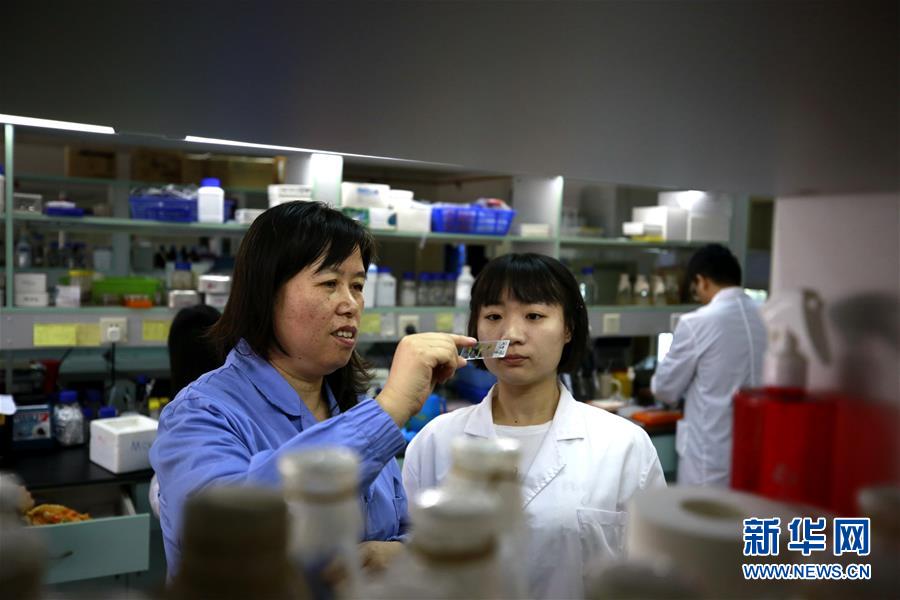 中科院植物生理生態(tài)研究所鄭慧瓊研究員(左)和學(xué)生在實(shí)驗(yàn)室研究擬南芥(9月14日攝)。新華社記者張建松攝