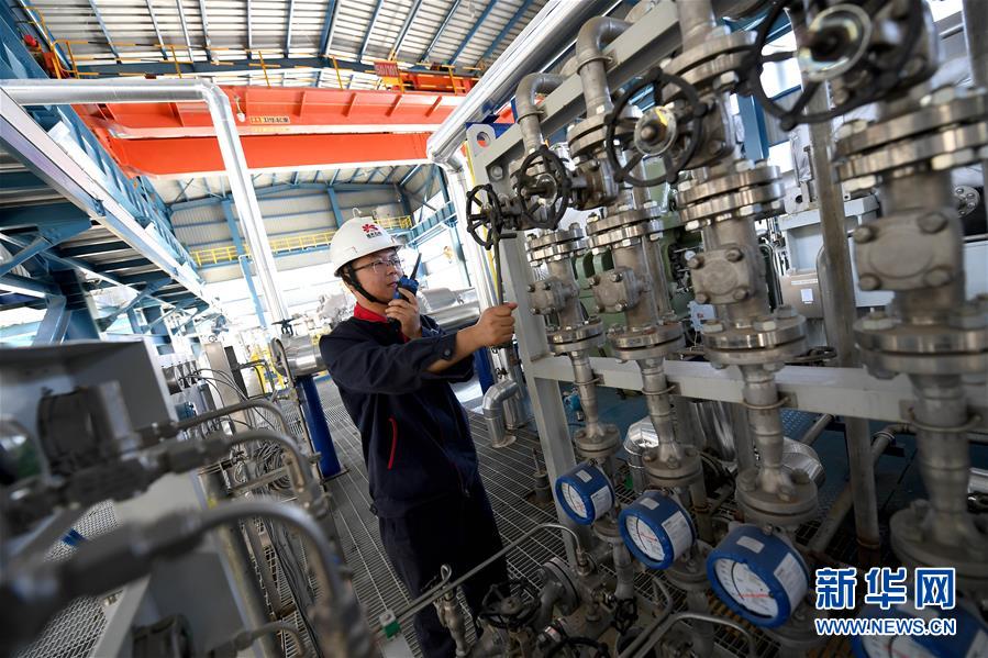延安煤油氣資源綜合利用項(xiàng)目甲醇制烯烴中心的工作人員進(jìn)行設(shè)備巡檢(9月28日攝)。新華社記者劉瀟攝