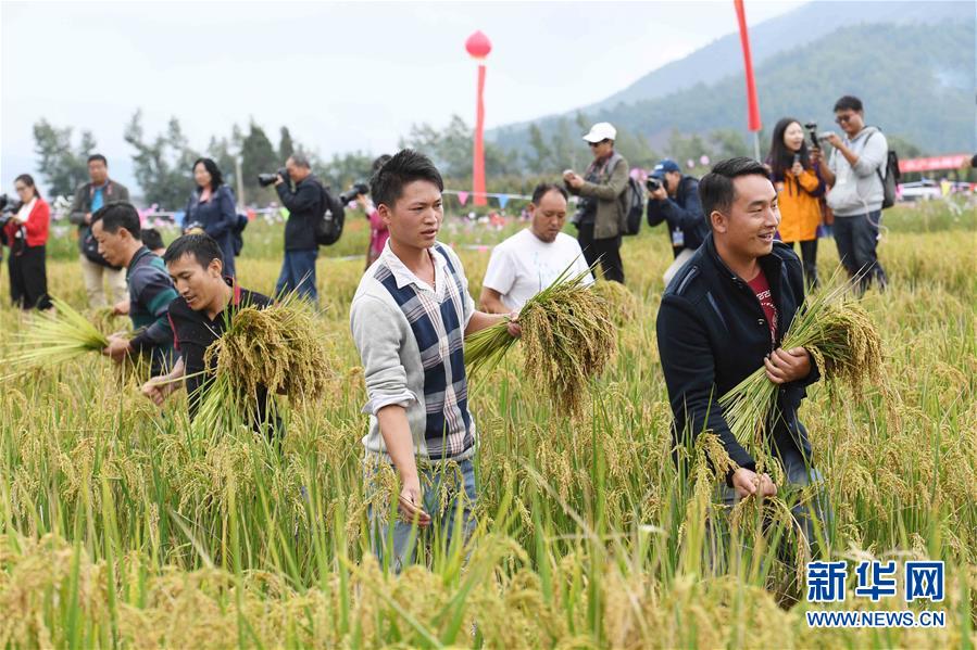 9月29日,人們參加拔谷穗比賽。9月29日,云南省尋甸回族彝族自治縣2018年首屆農(nóng)民豐收節(jié)暨第二屆摸魚節(jié)在雞街鎮(zhèn)舉行,當(dāng)?shù)剞r(nóng)民和游客在豐收的稻田里進(jìn)行摸魚、拔谷穗、山歌對唱等活動,享受收獲的喜悅。新華社記者楊宗友攝
