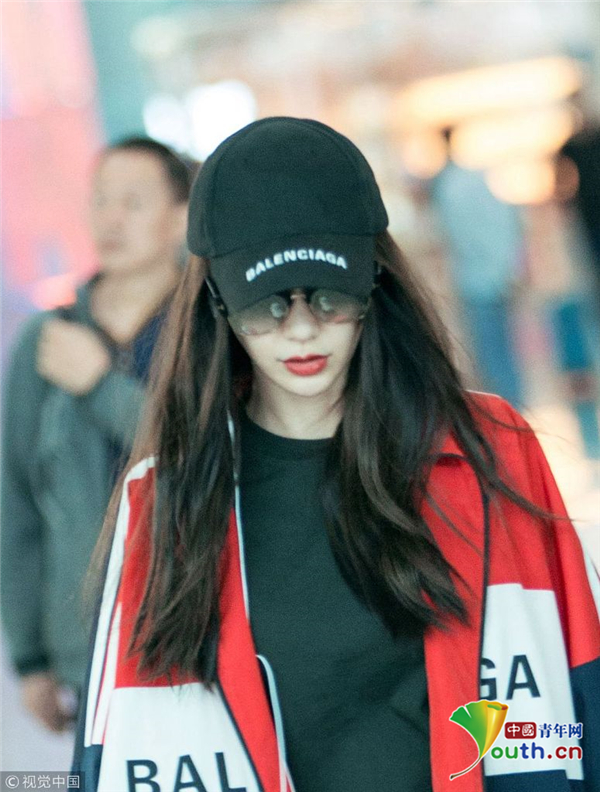 2018年10月11日,深圳,Angelababy現(xiàn)身深圳機場,頭戴鴨舌帽的她露出半張小臉紅唇嬌艷,一身休閑裝扮時尚靚麗,手中的大包與她纖瘦的身材形成鮮明對比,十分搶鏡,在上身的寬大運動衣襯托下,套著緊身褲的雙腿更顯細長。