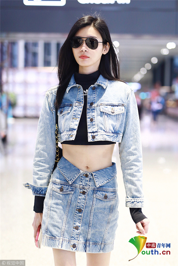 10月31日,上海,奚夢瑤現(xiàn)身機場, 她穿帥氣牛仔裝露細腰長腿,身材好到爆。