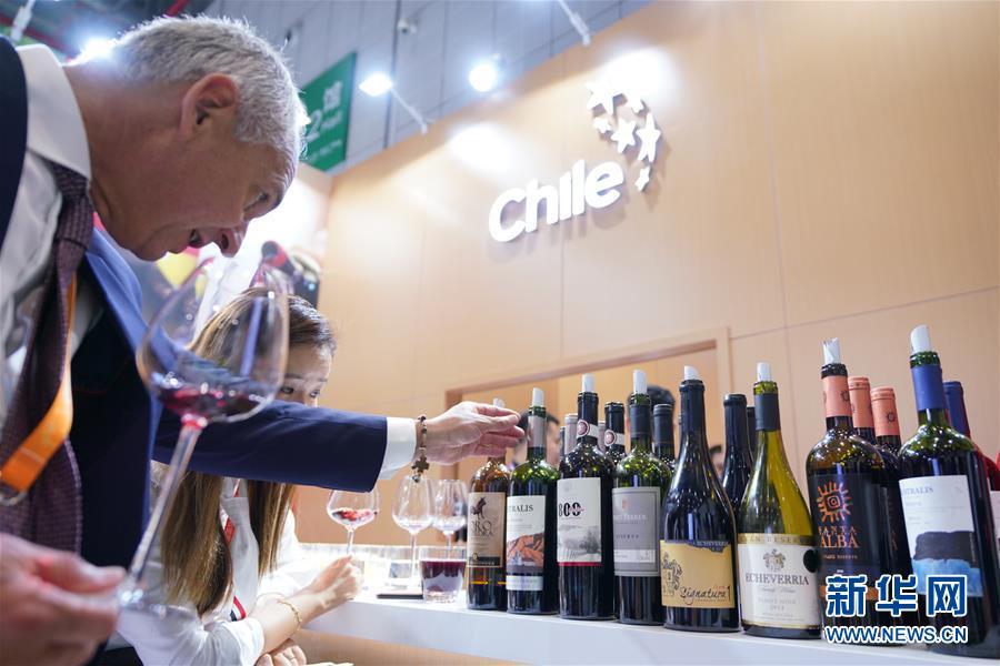 11月5日,一位男士了解智利葡萄酒。 當(dāng)日,首屆中國(guó)國(guó)際進(jìn)口博覽會(huì)在國(guó)家會(huì)展中心(上海)開(kāi)幕。 新華社記者 孟鼎博 攝