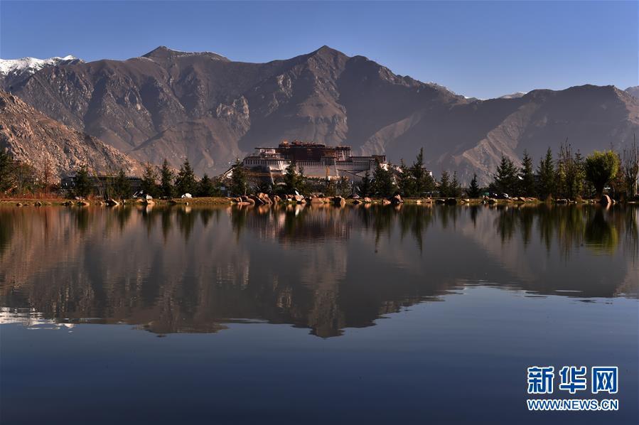 修繕后的布達拉宮金頂群(11月7日攝)。