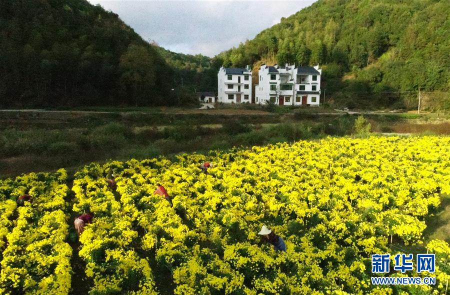 11月8日,婺源縣思口鎮(zhèn)農(nóng)戶在采摘皇菊。 新華社記者 胡晨歡 攝