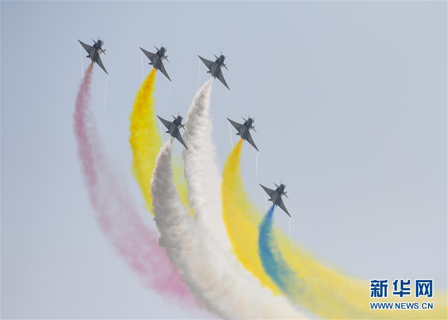 11月6日,中國空軍八一飛行表演隊在航展現(xiàn)場進行飛行表演。當日,第十二屆中國國際航空航天博覽會在珠海開幕。新華社記者鄧華攝