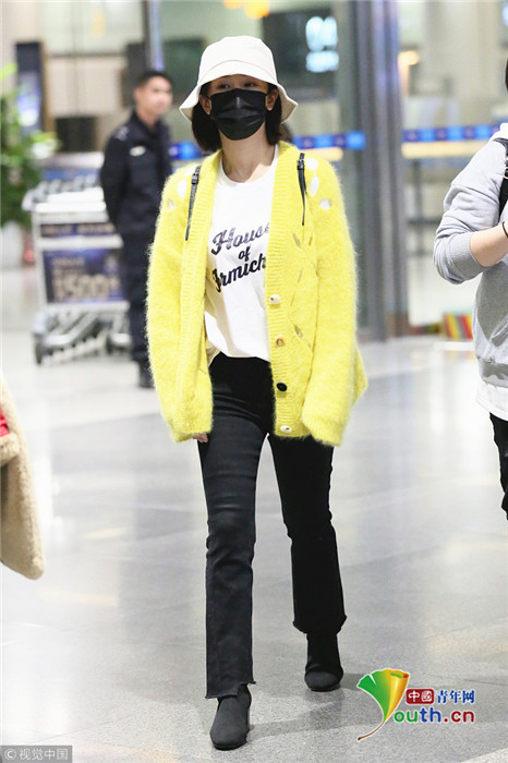 日前,楊紫現(xiàn)身長沙黃花機場,她頭戴漁夫帽的她口罩遮面,身著鮮黃針織衫相當(dāng)搶眼,一路獲粉絲跟拍。