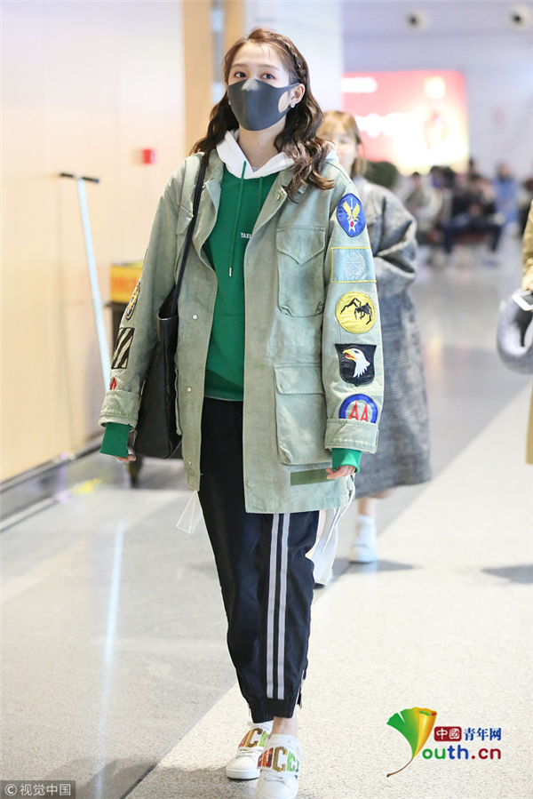 關(guān)曉彤穿男友風外套酷中帶甜 摘口罩露清純美貌