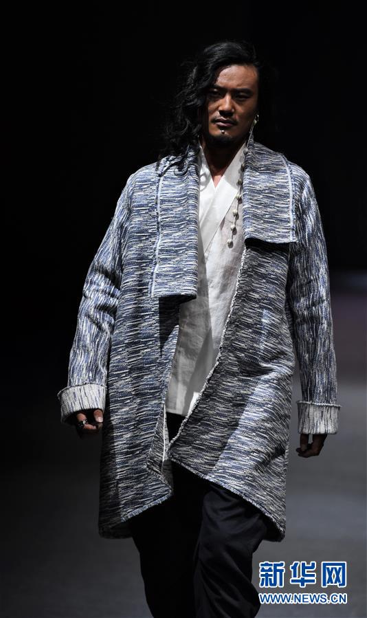模特在AJ-NAMO藏裝秀上展示藏族設(shè)計師阿佳娜姆設(shè)計的時裝(11月18日攝)。 新華社記者 普布扎西攝