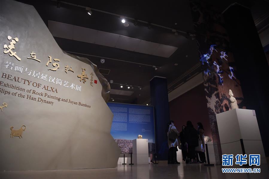 11月21日,觀眾在中國美術館參觀“美在阿拉善—巖畫與居延漢簡藝術展”。新華社記者 魯鵬 攝