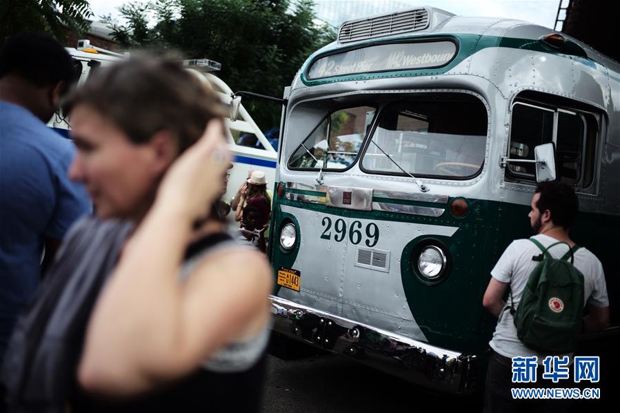當(dāng)日,由紐約交通博物館主辦的第25屆紐約巴士節(jié)在布魯克林舉行,十余輛巴士敞開(kāi)車門,向民眾展示了紐約地面公共交通工具80多年來(lái)的變遷。