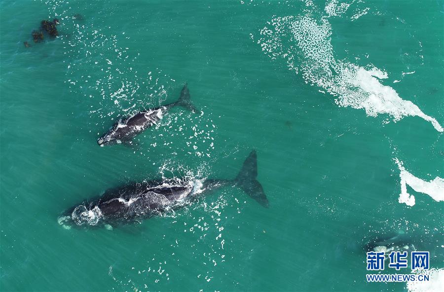 9月30日,在南非赫曼紐斯小鎮(zhèn)附近海面上,南露脊鯨在海岸邊暢游。9月29日,位于開普敦以東約115公里的赫曼紐斯小鎮(zhèn)迎來(lái)2018年的鯨魚節(jié),來(lái)自世界各地的游客可乘船出海觀鯨,也可在岸邊等待鯨魚的到來(lái)。新華社記者陳誠(chéng)攝