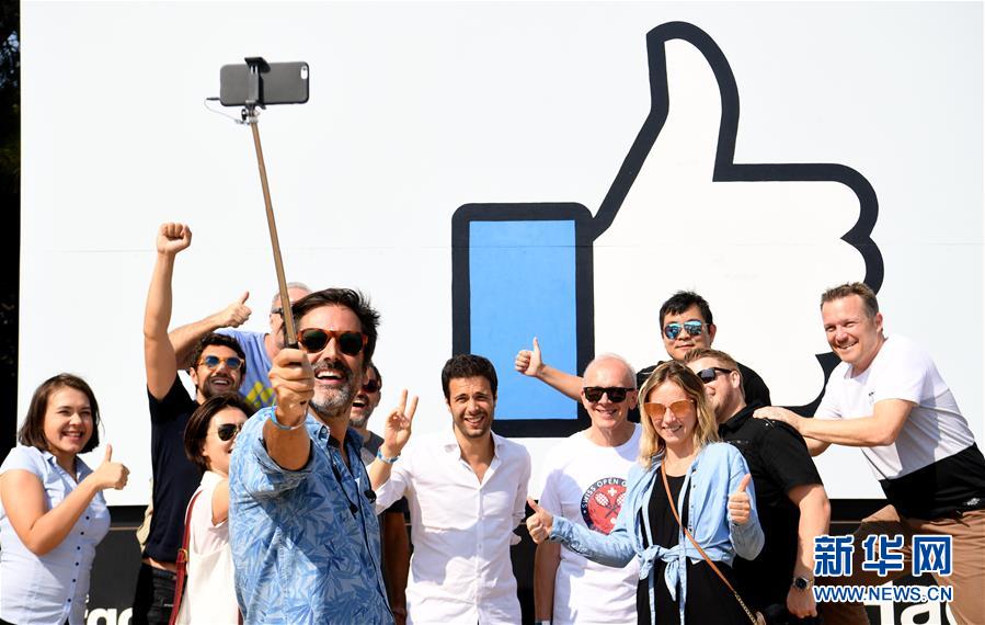 8月11日,在美國舊金山灣區(qū),參加“臉書節(jié)”的游客在臉書園區(qū)標(biāo)志前合影。當(dāng)日,舊金山灣區(qū)臉書園區(qū)舉行“臉書節(jié)”,人們?cè)诨顒?dòng)中欣賞文藝表演,品嘗美食,乘坐游樂設(shè)施等,活動(dòng)收入將捐給慈善團(tuán)體。新華社記者吳曉凌攝