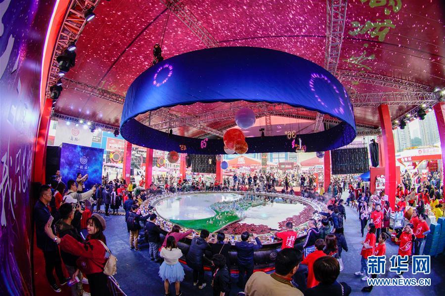 10月19日,食客們圍坐在一口特大火鍋前品嘗。 當(dāng)日,第十屆中國(重慶)火鍋美食文化節(jié)在重慶市江北區(qū)正式開幕。本屆火鍋美食文化節(jié)為期4天,以“麻辣happy城市節(jié)日”為主題,50000平方米的展區(qū)吸引了70余個火鍋品牌、300余家火鍋供應(yīng)鏈企業(yè)參展,萬人同燙火鍋的盛況在“火鍋之都”重慶再現(xiàn)。 新華社記者 劉潺 攝