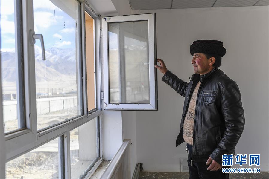 在塔什庫爾干塔吉克自治縣塔提庫力易地扶貧搬遷安置點,都熱·加爾曼打開新房的窗戶(11月18日攝)。新華社記者胡虎虎攝