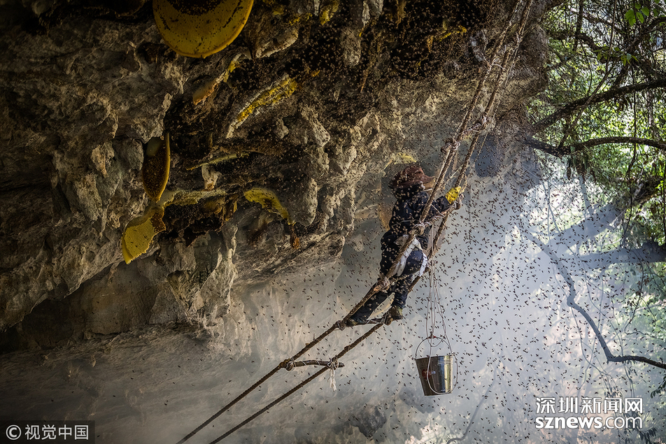 “最難采摘的崖蜜,是凹進(jìn)懸崖內(nèi)側(cè)3至5米的那種?!眱赡陙?,小蕊親自跟采了十幾趟蜜,最怕遇到凹陷的蜜源。