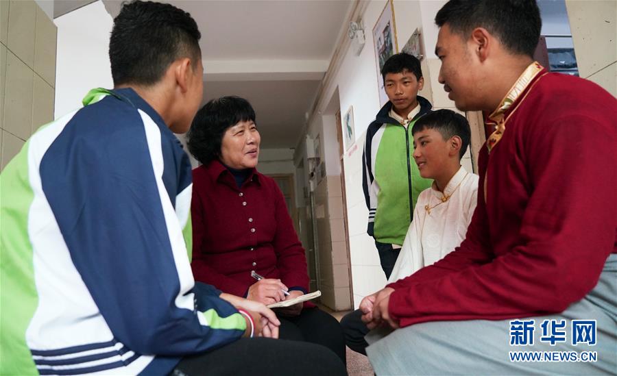 11月16日,劉和平(左二)與南昌市第十七中學(xué)西藏班學(xué)生聊天。新華社記者 胡晨歡 攝