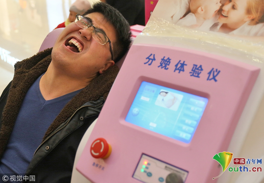 2018年3月8日,“三八”婦女節(jié),山東煙臺大悅城提供了一臺“分娩體驗(yàn)儀”供男士免費(fèi)體驗(yàn),讓他們體驗(yàn)女性分娩時(shí)的陣痛,了解女性分娩時(shí)的忍耐與艱辛。