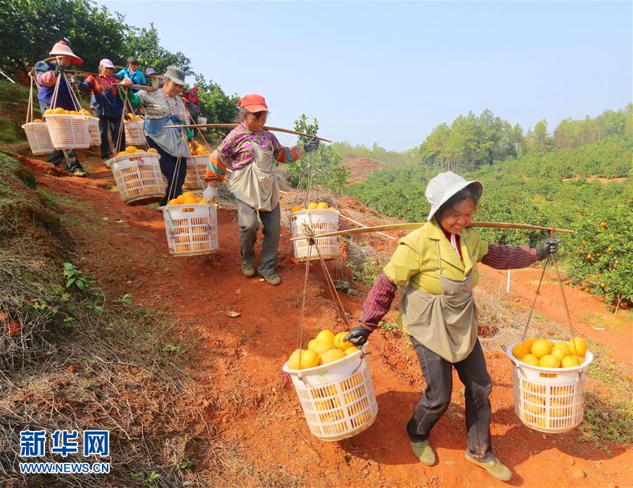 近日,江西省贛州市于都縣近15萬畝臍橙進入豐收采摘期,當?shù)剞r戶抓住晴好天氣采摘,果園呈現(xiàn)一派繁忙景象。 新華社記者 胡晨歡攝