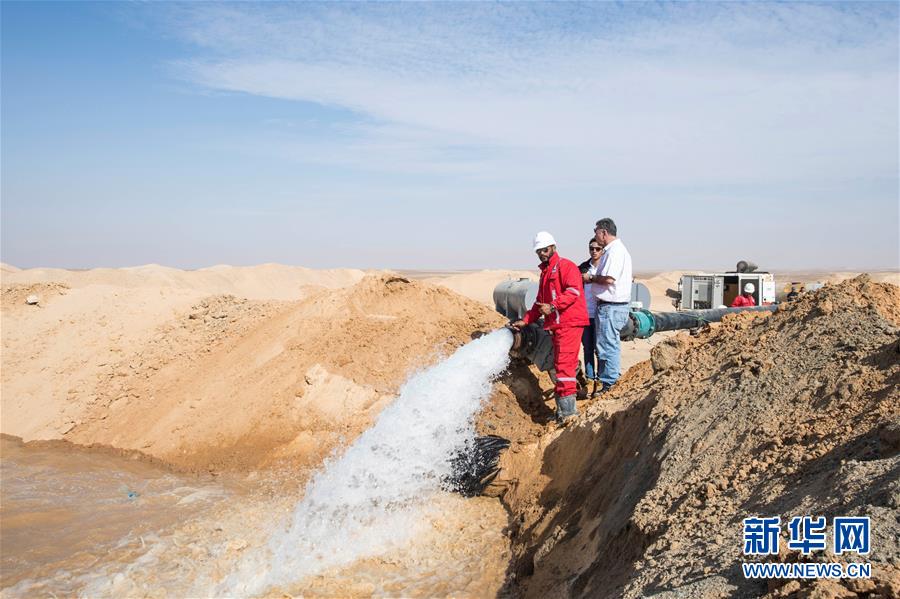 11月21日,在埃及明亞省,地下水從水管里噴涌而出。 2017年,中國(guó)中曼石油公司與阿聯(lián)酋海灣集團(tuán)簽訂合同,為該集團(tuán)在埃及沙漠中的大型農(nóng)業(yè)項(xiàng)目鉆探300口水井。根據(jù)合同,中曼石油將先期完成30口井的試鉆探,剩余水井將以每月7口的速度交付。目前有超過200名工人在鉆井現(xiàn)場(chǎng)作業(yè),大部分是埃及本地人。 新華社記者李碧念攝