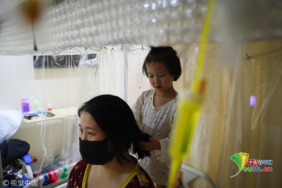 中國青年網(wǎng)北京12月3日電2018年11月17日,在北京博仁醫(yī)院病房內(nèi),4歲的小婭馨披著一條象征著婚紗的毯子坐在床上,爸爸袁東方雙手捧著一束小小的假鮮花單膝跪地向女兒“求婚”,隨后,父女倆緊緊地擁抱在一起,顯得既幸福又傷感。旁邊的小婭馨媽媽抹著眼淚抽泣著說“我女兒未必明白結(jié)婚寓意著什么,但她真的好想健康地活著!她是那么天真無邪,又那么懂事可愛,我們真舍不得丟下她不管,祈求社會上的好心人幫幫我們,救救我心愛的女兒吧!”。