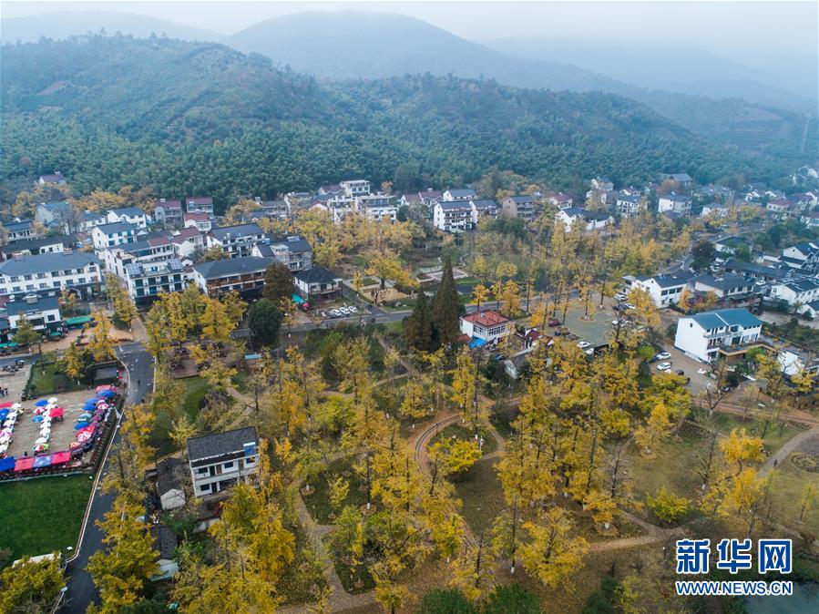 空中俯瞰十里銀杏林長(zhǎng)廊(11月16日無(wú)人機(jī)拍攝)。近日,在浙江省長(zhǎng)興縣小浦鎮(zhèn),“十里銀杏長(zhǎng)廊”和近千畝花海經(jīng)過(guò)近一年的升級(jí)改造后,以嶄新的面貌與游客見(jiàn)面?;ê!⒂^光小火車、古村民宿、銀杏長(zhǎng)廊等旅游項(xiàng)目全面提升了小浦鎮(zhèn)鄉(xiāng)村旅游的品質(zhì)。新華社記者 徐昱 攝