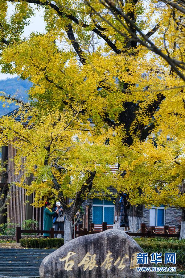 11月1日,游客在河南省嵩縣白河鄉(xiāng)下寺村古銀杏樹(shù)下拍攝秋景。 深秋時(shí)節(jié),河南省嵩縣白河鄉(xiāng)下寺村的古銀杏林為小山村披上了“金甲”。漫天黃葉,遍地金色,一幢幢民居掩映在色彩斑斕的世界里,美不勝收,吸引了眾多游客賞景拍照。 新華社記者 李安 攝
