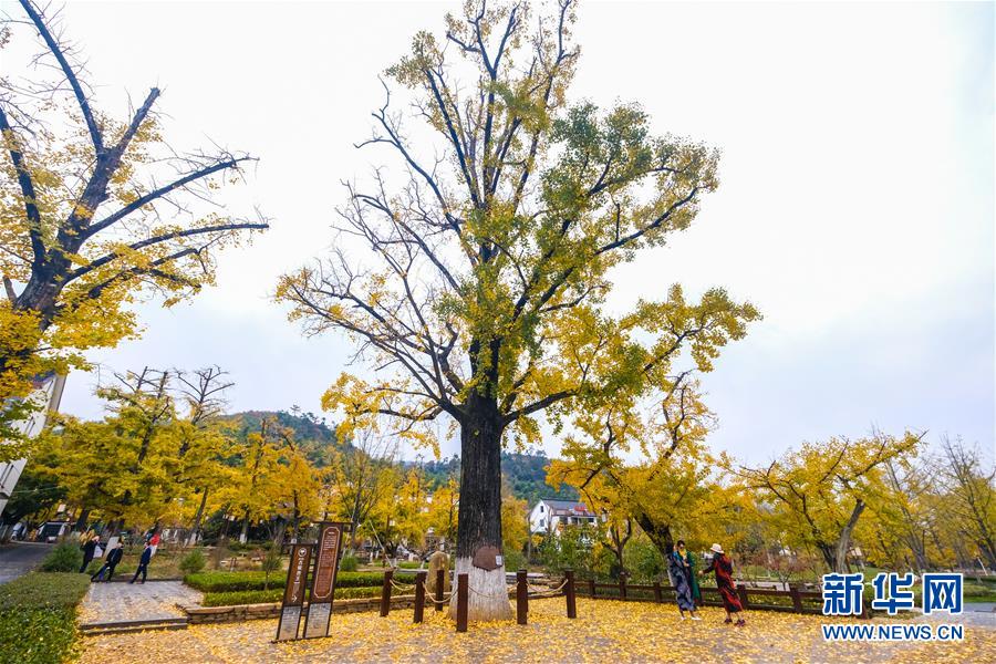 11月16日,游客在銀杏林中游玩。近日,在浙江省長興縣小浦鎮(zhèn),“十里銀杏長廊”和近千畝花海經(jīng)過近一年的升級改造后,以嶄新的面貌與游客見面。花海、觀光小火車、古村民宿、銀杏長廊等旅游項目全面提升了小浦鎮(zhèn)鄉(xiāng)村旅游的品質(zhì)。新華社記者 徐昱 攝