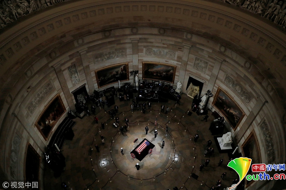 老布什靈柩安放在國(guó)會(huì)圓形大廳 小布什出席儀式