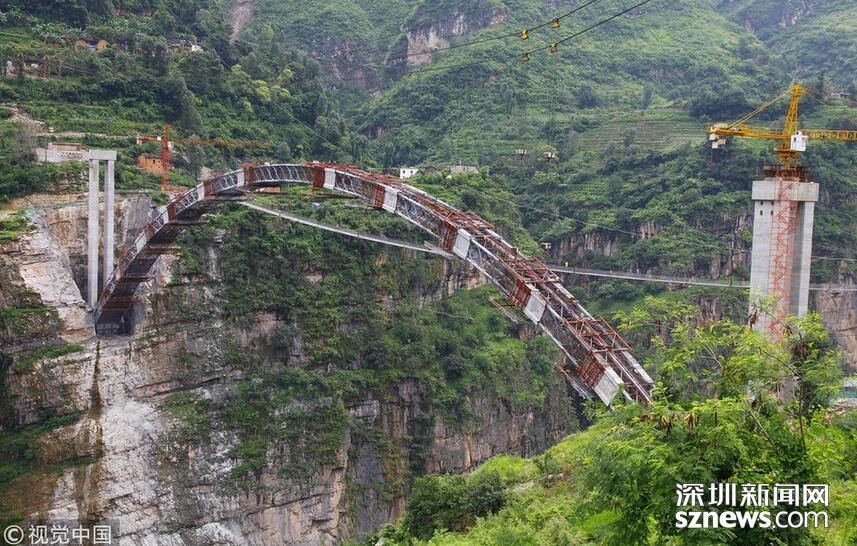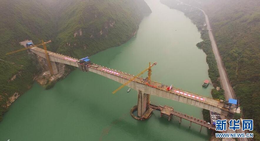2018年5月30日,云南昭通,鸚哥大橋完成最后一段35米引橋現(xiàn)澆箱梁作業(yè),標志著“鸚哥溜索改橋”主體工程完工,進入最后階段的橋面鋪裝和防護欄施工,預(yù)計6月底建成通車。