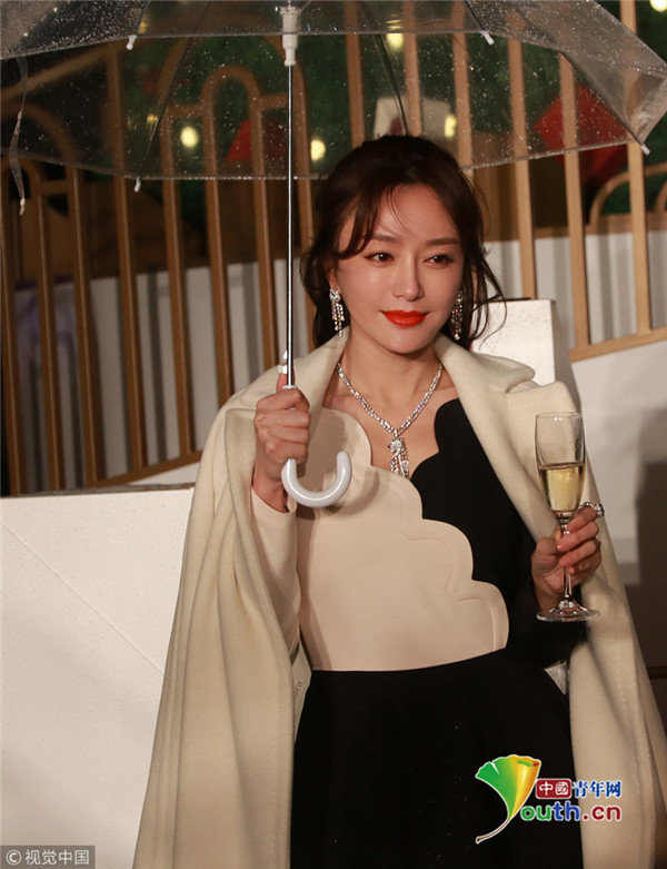 秦嵐撐傘雪膚紅唇美如畫 優(yōu)雅品香檳 ...