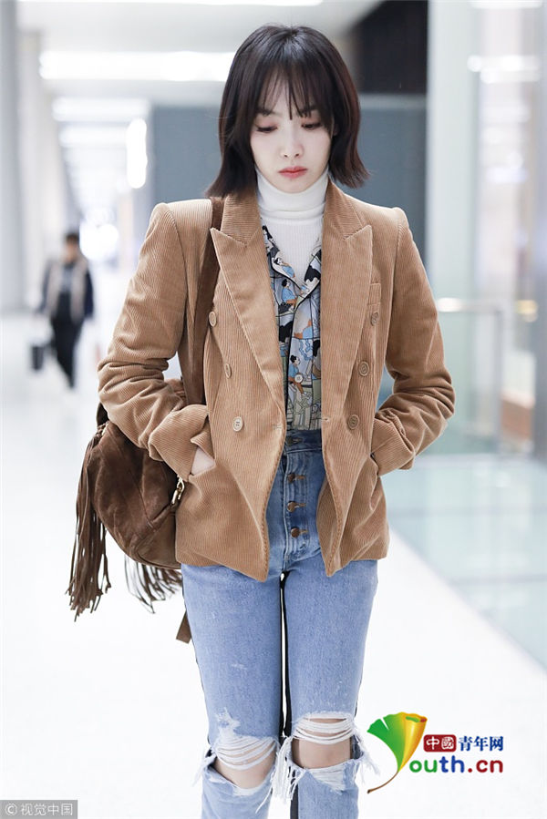 2018年12月16日,宋茜從上海機(jī)場(chǎng)飛往北京機(jī)場(chǎng)。她身穿短款薄外套,搭配破洞牛仔褲,要風(fēng)度不要溫度,一路低頭前行悶悶不樂似遇愁心事,到了北京之后她又裹起了厚圍巾,但依舊悶悶不樂。
