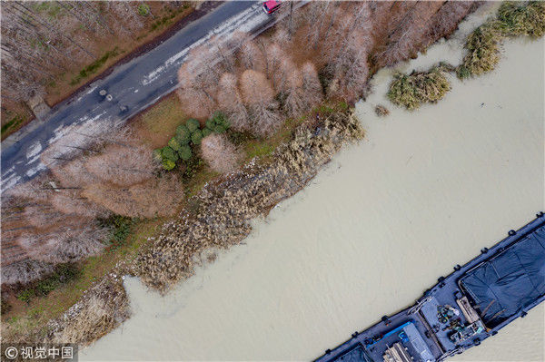 2018年12月27日,江蘇淮安,航拍京杭大運(yùn)河淮安段冬日景色。