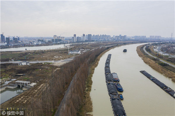 2018年12月27日,江蘇淮安,航拍京杭大運(yùn)河淮安段冬日景色。