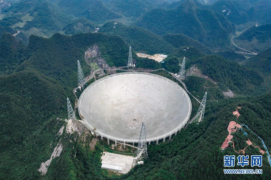 9月10日無人機(jī)拍攝的“中國天眼”全景。被譽(yù)為“中國天眼”的500米口徑球面射電望遠(yuǎn)鏡(FAST),經(jīng)過兩年的緊張調(diào)試工作,現(xiàn)已經(jīng)實(shí)現(xiàn)了跟蹤、漂移掃描、運(yùn)動中掃描等多種觀測模式。