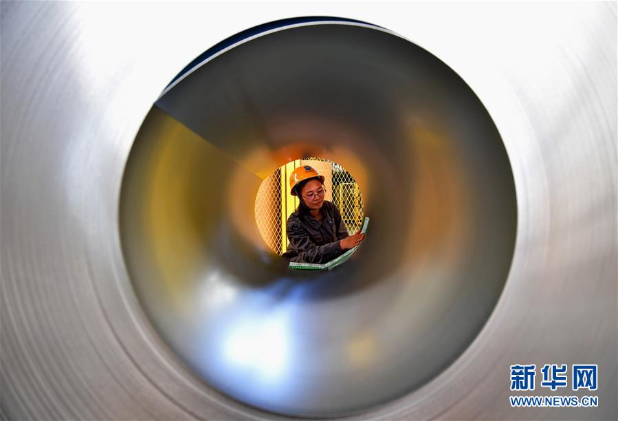 這是唐山市一家汽車(chē)鋼板生產(chǎn)企業(yè)的工人在給剛生產(chǎn)出的鋼板粘貼批號(hào)標(biāo)簽(4月25日攝)。