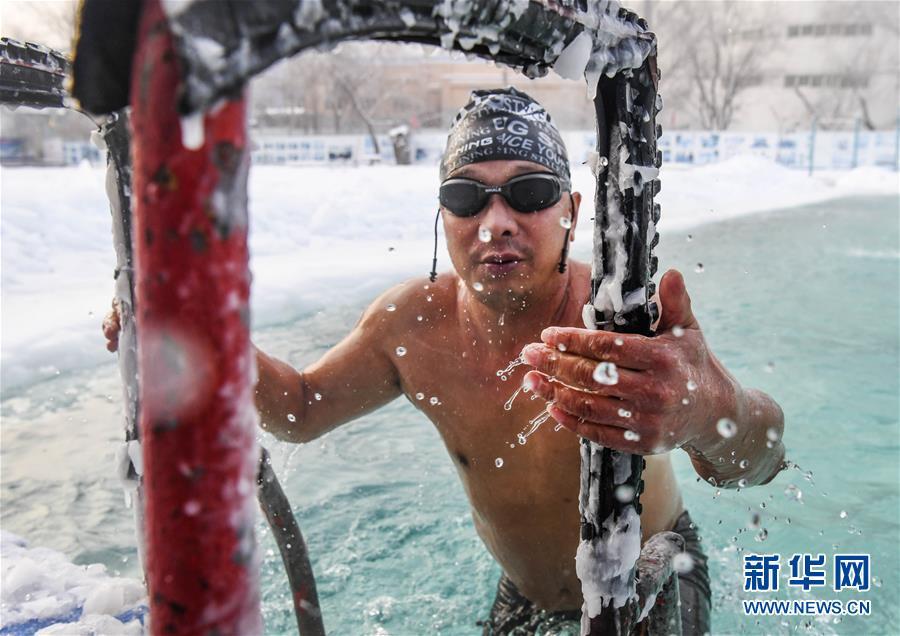 當日,新疆烏魯木齊戶外氣溫接近零下20攝氏度,許多冬泳愛好者不懼嚴寒,來到烏魯木齊紅山游泳中心戶外泳池進行冬泳運動,鍛煉身體,磨練意志。