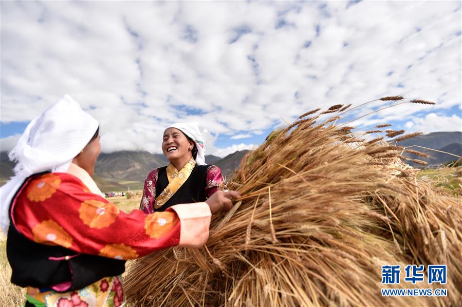 9月23日,首個(gè)中國(guó)農(nóng)民豐收節(jié),拉薩市林周縣松盤鄉(xiāng)松盤村兩名藏族農(nóng)民在田間聊天。 新華社記者 覺果 攝