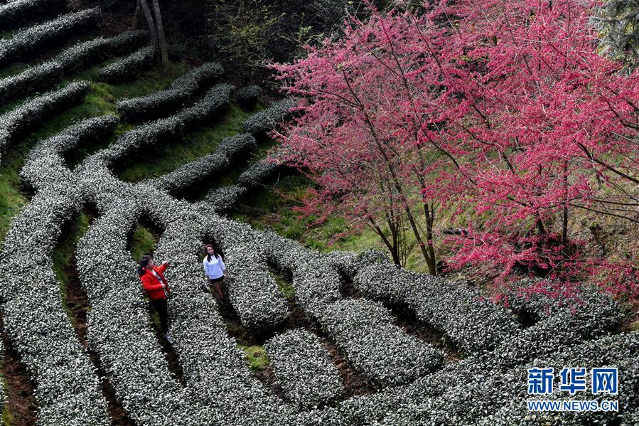福建省連城縣賴源鄉(xiāng)黃宗村海拔1000余米的高山茶園面積約千畝,園內(nèi)套種一萬(wàn)余棵櫻花樹。寒冬時(shí)節(jié),綻放的櫻花與綠色茶園相互映襯,宛如一幅田園畫卷。