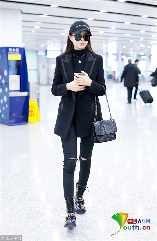 沈夢(mèng)辰全黑look又颯又美 黑超遮面甜妹變酷girl