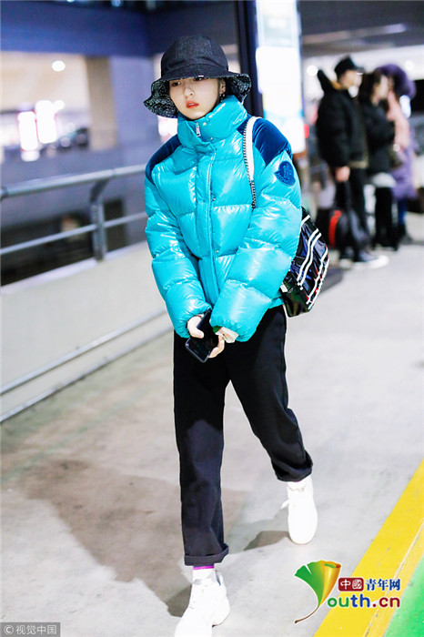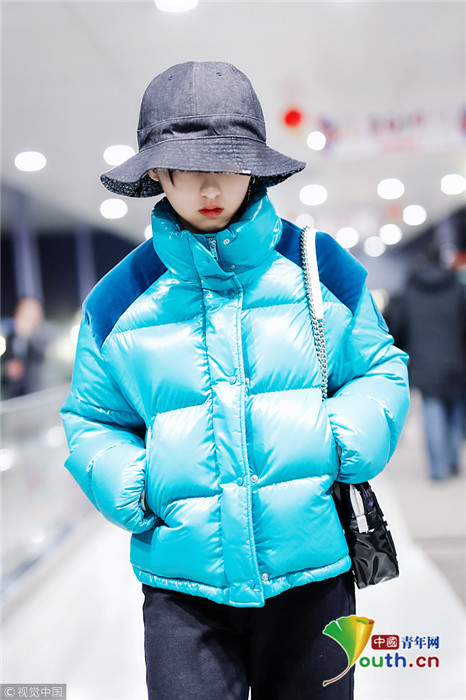 2019年1月31日,上海,張子楓現(xiàn)身機(jī)場。她身穿藍(lán)色羽絨服,戴著大檐帽也難擋好氣色,雪膚紅唇妝容精致展現(xiàn)女人味。